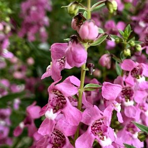 おはようございます😊 今日の天気は晴れ時々曇り🌤️ 最高気温31度 最低気温25度 我が家の小さな花壇より🌸🌼🌺 🌿🩷アンゲロニア🩷🌿 本日、2投稿目になります🙇♀️ 我が家のアンゲロニア(ピンク色🩷)が 7月に満開を迎えていましたが️…遅ればせながら 投稿しますね😅🌿🩷🌿 前回投稿5月5日 小さな花を穂状花序に咲かせ…初夏から秋まで次々と楽しむことができる夏の暑さに強いお花💕 茎を直立させ穂状にラッパ状の可愛い花を咲かせています💕🌿🩷🌿🩷🌿 🥰 科属名 オオバコ科 アンゲロニア属 別 名 エンジェルラベンダー サマースナップドラゴン 原産地 主に中央アメリカから 南アメリカの熱帯から 亜熱帯地域(メキシコ ブラジル、アルゼンチン 西インド諸島など) 開花期 5月から11月頃 花言葉 「過去の恋人」「片思いの恋」 🌸•*¨*•.¸¸☆•*🌿🌸🌿•*¨*•.¸¸☆*・🌸