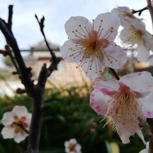 植木鉢の梅が満開近くになりました~ ピンクの濃い模様の入ったのが、3割くらいあります。今までずっと模様入った事が、多分無かったのです 可愛くて、嬉しい ちょっとびっくり😉