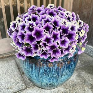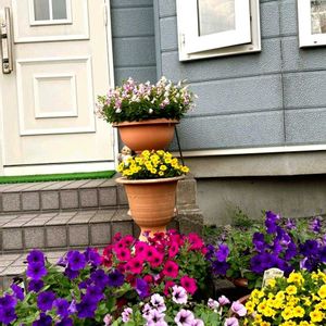 母の日に娘より頂いたサフィニアが満開になりました🎶 玄関で華やいでいます💓