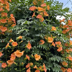 ノウゼンカズラが満開〜💓 今年は雨が少ないので花数が多くて華やかです〜💕 雨が降る前に1回目の剪定✂️ 今年は3回目の開花が見られそうで楽しみです〜😍