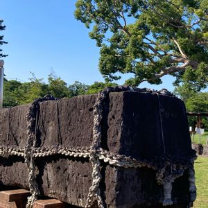 晴れた日に高原駅で撮った江戸城築城石の巨石サンプル展示です 江戸城改築の際東伊豆から船で運搬され、石垣の隅や門に使用されている角石の多くは伊豆の安山岩だそうです🪨 同好会の皆様、年齢はベテラン中身は未熟者ですが、よろしくお願いいたします☺️