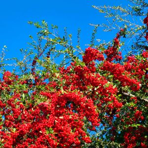 おはようございます🙋♀️ ピラカンサ 10/14日投稿のピラカンサが真っ赤です🎶💖😃 青空とのコラボが秋空に映えて素敵です😌💓