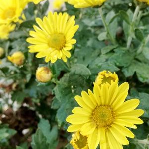 おはようございます♪ 小さな庭で 元気カラーの小菊さんが勢揃いしました。 2枚目からは、元気カラーで夏の暑い時から咲き続けてくれているお花さんのガザニアと、葉っぱが銅葉色の魅力的なマリーゴールド。 4枚めは、昨年秋に植えたパンジーの零れ種から発芽して、しばらくの間花を咲かせてくれています。
