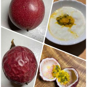 10月27日に赤くなって落ちていたパッションフルーツ🔴 シワシワになってきたので切ってみました! この時期だからか中身は少なかったし酸味強かったけどちゃんとパッションフルーツでした🙌 ヨーグルトと一緒に戴きました😋