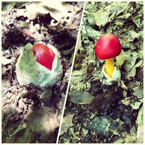 キノコ狩りへ行ってきました。 毒キノコが多いテングタケ属の中でも食用出来るタマゴタケ。似ている毒キノコあるので見分け方覚えないと危険😁