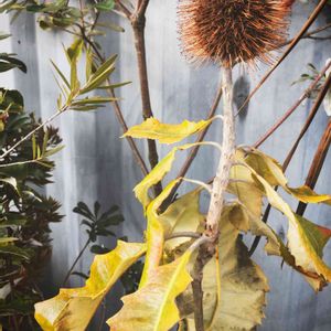 バンクシア ロブル。7月4日撮影。昨年40㎝ほどの苗木を植えまして・・・今年は🌸蕾🌸が4つ付きました(^O^)/。生命力溢れる❕❔蕾で開花までの過程も楽しめそうです😊。