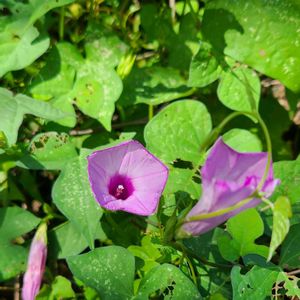 これは朝のウォーキングで撮ったイモネノホシアサガオ?らしいです。 2枚目はわかりませんが外来種の朝顔です。 小さくて可愛いのですが川べりに大繁殖しています🎶