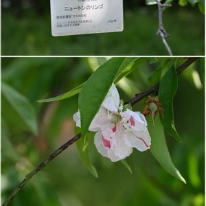 おはようございます 今日のお花『リンゴ』𓂃𓂂ꕤ*.゚ 京都府立植物園にて… ニュートンのリンゴ🍏を見ることができました👀❣️一輪だけ可憐に咲いていたお花が初めましてでした♪次に行った時に青い小さなリンゴに出会えました🍏🍏 緑色で酸味が強く、甘みはほとんど感じられないのが特徴です。調理用のリンゴとして使われていたため、未熟な若いリンゴのような味と表現されることもあります。 品種:「ケントの花」という古い品種のリンゴです。 逸話…ニュートンが1665年頃、ペストの大流行で故郷に帰省中、リンゴが木から落ちるのを見て、なぜ真下に落ちるのかという疑問から万有引力の法則を発見したという逸話があります。