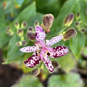 こんにちは☀️ ホトトギスの百恵さんが咲き出しました〜♪ ソバカスちゃんが見れました✨ ローゼルのお花 先日咲いた初咲きは雨☔に濡れた姿だったので再度UP 白実のお花は真ん中に赤色が無いです🌼 春、夏に咲いたアジュガさん🪻 秋にも咲いてくれてます〜✨ 夏、秋は一輪ですが楽しませてくれますね😊