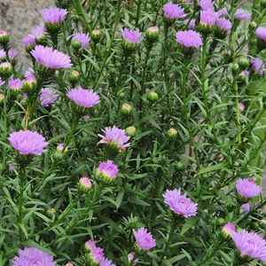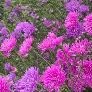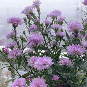 数年前に、お嫁に行った クジャクアスター(?)が、友人宅で元気に💚綺麗に💜咲いていました。💜💜💜