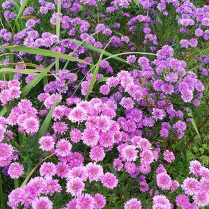 庭のクジャクアスター♪ 手前はピンク、奥は紫です。