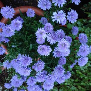こんにちは(*^^*) クジャクアスター毎年咲いてくれます💜💜💜 八重咲きで可愛い🎶🎶🎶