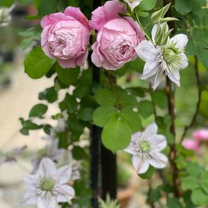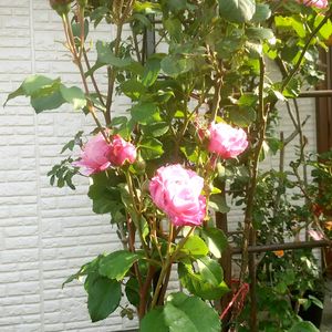 【バラ】 ① デルバール 『シャンテ ロゼ ミサト』 繰り返し咲きの大輪で 暑いのに花持ちも良い🙆 グラデーションが素敵なバラさん🌹 ② ロサオリエンティス プログレッシオ 『シャルール』 誰?という派手顔さんで咲いてます🤭 ソフトエレガント系のヒラヒラした花弁のハズ… 難しそうに見えて さすが木村卓功さんのバラ 『バラの家』指標 タイプ0 蕾があるけどカットしてしまおうか悩み中… ③ ワーナー 『ブルーフォーユー』 もはや 『ピンクフォーユー』 そう名付けたくなる様なピンクで咲いています🩷 大株なので咲かせちゃってます😄 ④ 昨日お話しした1つ Apple Roses🍎 忽滑谷史記(ヌカルヤフミノリ)さんのバラ 『ピッコリーナ』 花径約0.8cm 本当に小さいのにしっかり八重 八重咲きのカスミソウみたい? ツヤツヤの葉っぱ維持したいなぁ☺️ ⑤ 昨日お話しした1つ デルイター 『アンティーク レース』 [中之条ガーデンズ]でとっても綺麗に咲かせていて一目惚れ🤩 調べてみると… バラの家 指標のタイプ4(月4回消毒) そして… 樹勢 弱い うどん粉 弱い 黒星 弱い 耐陰性 とても弱い 耐寒性 とても弱い 耐暑性 普通 コンパクトに育つ 花持ちが良い という… 半日陰庭だし… ダメだぁ〜😥と諦めていたのですが… たまたま見たワゴンセールに有るではないですかぁ‼️ もう、勝手に運命感じちゃって… 育ててみないと分からない‼️と 悩んだ挙句にポチりました🤭 苗が素晴らしいのでお披露目✨ 約80cmの大苗 長細いダンボールで届きましたよ😆 蕾も沢山です✨ さて、上手く咲かせられるかしら? ワゴンセールはまだやってます☺️ 長々と失礼しました…😌