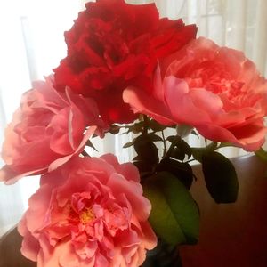 こんにちは~☔ 午前中の雷雨で⛈️⚡ お庭はしっかり潤ったようです💧 剪定途中のバラたち🌹 蕾が次々と上がっていて何だか剪定するのが可哀想な気がして来ました…😂 ①シャンテ ロゼ ミサト ②プリンセス アレキサンドラ オブ ケント ③アンブリッジローズ ④リテラチュール ⑤アントニオ ガウディ 1輪のお花のはずが2輪くっ付いて咲いています😆🌹🌹 双子ちゃん(,,>᎑<,,)カワイイ*•.❥* 久しぶりに 🏷水曜ローズショー🥀
