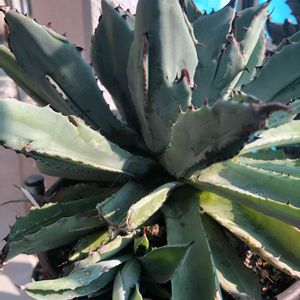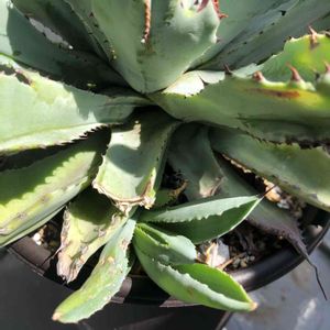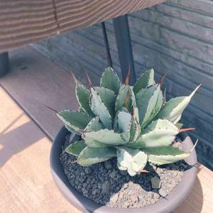 一昨年の秋にお迎えしたキュービックなアガベは、ようやく太短い葉が出てきたので、下葉と根を整理して同じ鉢に植え直しました。 早く細い葉が全部太短いのに入れ替わって、カッコいい感じに成って欲しいなぁ😆