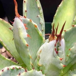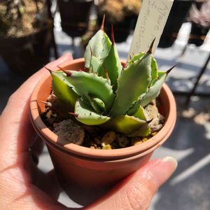 今日は暖かいですね😊 お部屋チームのアガベ達にいっせいに水やりです🚰 そろそろおメメを覚ましてもらわないとね♪ うちの新人ちゃんのキュービック💓 うねうねの赤トゲがかっこいいです🥰