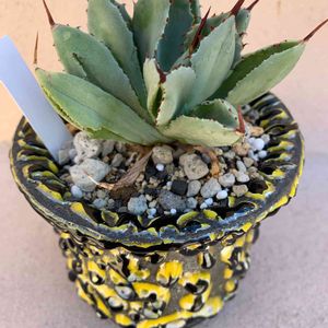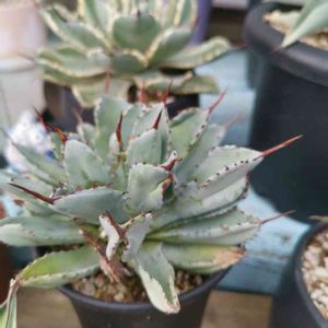 この間の植木市で手に入れました、アガベ、キュービックです、以前から憧れてたんで、嬉しいです。少し予算オーバーでしたがこの裏棘の素敵さを見たら狩っちゃうでしょ💕 エガチャンがトリケラトプスにお尻プスッてされてます。笑笑 「ぐぅあ~!後ろの棘がきた~」(≧Д≦)