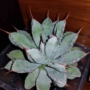 アガベ・キュービック 青白い肌から生えている赤茶色のトゲが美しい 男前でハードボイルドなアガベです
