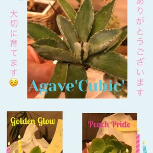 こんばんは〜😊 ついに、小包み✨がどどきましたよ〜 お手紙まで頂きとても嬉しいです😌 すぐさま、箱から出して見ました😍 アガベのキュービックがとてもカッコイイ ですね。初めて実物を見ました〜😭 嬉しいです☺️ オマケでエケベリアを2つも入れてくださ り、ありがとうございます😊 大切に育てたいと思います☺️ 外が好きさんありがとうございました😊