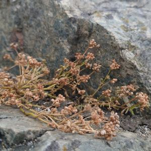 浜辺にも線香花火の様な花ありました😊。背丈20㌢位で花の1つは2・3㍉で固まって咲いてる🎶。 ハマゼリ 別名:ハマニンジン セリ科・ハマゼリ属