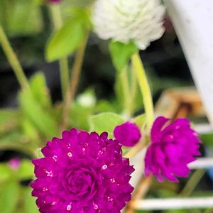 1️⃣2️⃣3️⃣ 今日のお花 センニチコウ(千日紅) 寄せ植えの中でなかなか広がれないけど可愛いです🤍🩷💜 4️⃣ ダイアンサスの今にも咲きそうな蕾👏👏 花弁の縁のギザギザがなんとも愛らしい (ღ*ˇᴗˇ*)。o♡キャワユイ♡
