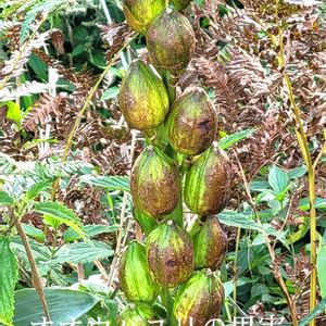 散歩道でオオウバユリの果実を見つけました*Ꙩꙻ₀Ꙩꙻ)! オオウバユリは開花後に結実して一生を終えますが、地下の子株は生きていて成長し、7~8年かけて栄誉を溜め込んでまた開花するそうです😊🤍💚 この果実は冬の風に乗せて種を飛ばすらしいです ( ੭ ・ᴗ・ )੭トベトベ 鱗茎はユリ根としてアイヌの方々に食されていたそうですが、ユリがこんなに大きいからユリ根も食べ応えありそうだなぁ😂👍👍