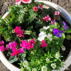 玄関先の寄せ植えです💞 ガーデンシクラメン ダイアンサス ビオラ アリッサム カルーナ 今朝は14℃くらいまで下がり、最高予想気温23℃ 北海道道東はもう秋の始めです(たぶん)😂 紅葉前にもう少しだけ外のお花を楽しみたいです (ღ*ˇᴗˇ*)。o♡ウットリ♡