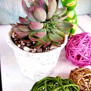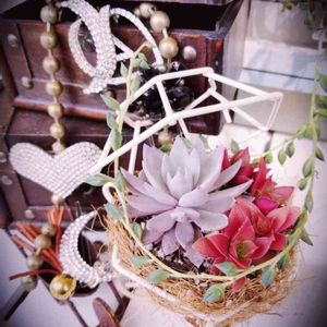 ベランダ庭より 多肉さんに夢中になり始めた 初期の寄せ植え~ デカすぎてただ植えてるだけで 個性がない...💦 今日は、いちごの日🍓~ 🍓🍓…閉じ込めるの好きだよね~ 今日美味しく頂きます...♪*゚ アフィニス、アガボィデス、ファイヤーリップ、月兎耳
