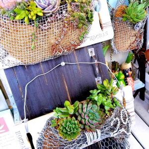 ベランダ庭より 作業棚~カスタマイズ中…🛠 雑貨やチューリップ🌷なんかが 増えて棚の上がゴチャゴチャ...💦 こんなんで重みに耐えれるのか…💧💦 今回投稿は自作金網バック風~鉢3点 私もいつか~プレゼント企画なるものをやってみたいと思うけど… 応募がない!って悲しい💧💦から… 夢のまた夢~○| ̄|_))ガックシ