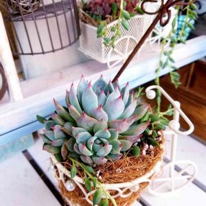 ベランダ庭より 肌寒~ 群生になりかけている桃太郎さん...♪*゚ またまだ~お子様は小さいですがこれからが楽しみかな.。.:*♡ 写真を撮りながら…思った……🤔 私乗り物系に多肉さんイン…多いよね~🚲