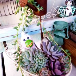 ベランダ庭より ポット出し風景~ 心待ちにしていた多肉さんが届いて~ ワクワク(っ ॑꒳ ॑c)ウキウキ...♪*゚ 昨日アジアンタムさんの居場所を創ってあげて🔨🌿 空いたスペースにグリネさんを垂らしたお陰で.。.:*♡ 想像以上の~アンティークな1枚📷✨ ハイハイ~自己満足です~(≖ㅂ≖)ʷʷʷ 今…興味深々の群生、綴化… ラウトップ、ムラサキ、桃太郎 まだまだ~あんまり群れてないけど…