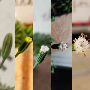 ベランダ庭より 多肉さんを育てて🌵 はじめて花が咲くまでを記録してみたよ。 ピーチネックレスさん🍑 10/15に蕾を見つけ👀 昨日咲きました💠 はじめは黄色い花が咲くのかと思っていましたが🎵 咲いてみたら白い花💠でした。 美しい?より可愛い? タンポポ?みたい🤔 見た目より咲いた事を喜ぼう🎵って感じの花ですかね( ´∀`)↗️💠 追記 教えて頂いたのですが❗ いい匂いが凄くします(((o(*゚∀゚*)o)))