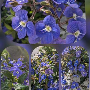 青い花集 1枚目 去年3月末に買ったPWのミオソティスミオマルク。 親株は夏越しできず、挿し穂したのも育たず、種採りも出来なかった。 植えてた、鉢植えからミオソティスミオマルクに似た葉が出てきたので、もしや?と思って育ててたら花が咲いた*⸜(* ॑꒳ ॑* )⸝*イェイ 寄せ植えになってるので、周りの勢いに負けてるのか、花が少し小さめ。 2枚目 ベロニカは、他にもあって、ドンドン増えてるが、品種が不明。多分、オックスフォードブルー。 3枚目 当初購入したタグにはオードリーとだけしか書いてなかった。オードリーだけでは、別の人物になってしまう(*⍢*)💦 オーブリエチアのオードリーです。 4枚目 PWのスーパーべナアイストゥインクル。 先日白一色のアイストゥインクルと同じ鉢植えに咲いてる。この咲き方がアイストゥインクルの花ですね(*^^*) 5枚目 零れたねからの矢車菊。 いろんなところに出てきてます。こちらは小さなポット植えの所に出てきたので、小さな株で可愛い😍 🏷️美しく青きドヨウ 🏷️春爛漫の青い花 🏷️青い小さな花を写そう!2025
