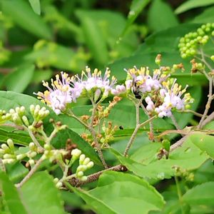 コムラサキ(小紫式部)❇️🩷✨❇️ もうほとんどグリーンの実になっている中で、まだ僅かに咲いている可愛らしいお花🌸✨