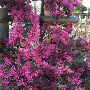 紅花常磐万作の花が、何輪か 咲きました。 お隣は、昨日の ティールーム(薔薇窓)の 壁 木が、いっぱい 面白い‼️
