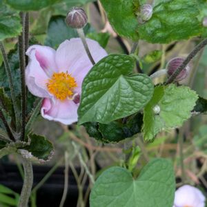 シュウメイギク セプテンバーチャーム アサガオに巻き付かれていたから、外しました。 まだ綺麗には咲けません。
