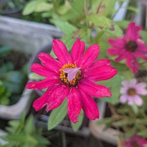 ジニアの花に、ピンクの小さな蛾が、いました。ピンクは初めて見ました。 シュウメイギク セプテンバーチャーム この色だったかな?色が違って見えます。