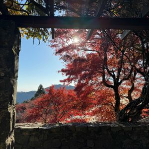〜 鎌倉アルプス⛰️とスラムダンク🏀の聖地を訪ねて🚶🏾② 〜 鎌倉五山第一位「建長寺」の境内を抜け登り始めて10分ほどすると「半僧坊(はんそうぼう)」という建長寺の奥座敷に到着です😀 ここでは天狗さんの姿をした火除け・厄除けの神様数体が建長寺の方向を向き建長寺を守護しています👺 登山開始からわずか10分ほど・・・この半僧坊が今回の登山の一番の絶景ポイントとは思いもしませんでしたが😅 登ってきた方向を振り返ると相模湾が木々の向こうに見え横に視線を向けると富士山も見えました😍 今年は多くの登山で富士山を眺めることが出来てホントにラッキーです🎶 今日は火曜日、この真っ赤なモミジ🍁で 🏷️真っ赤な火曜日 に参加させてくださいね🤗