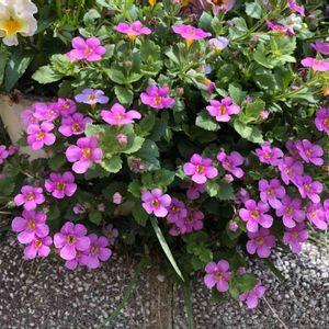 こんにちは😃🌸 お仕事 お疲れ様です♡ ビオラと寄せ植えにしてる バコパが綺麗に咲いてきました。 まあるくて 可愛いです。 玄関門の前には、 紫のバコパを植えてあります。 こんもりと 華やかになりますね! 挿し芽でも 増やせるので お家にある方は、 試してみて下さいね!