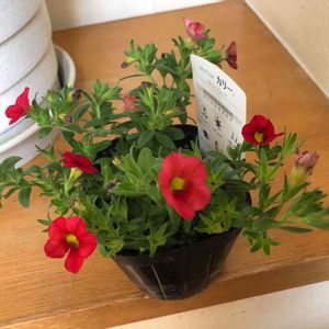 カリブラコア スカーレット レッド! コレ、 買いました^_^ 今ウチにある ツンベルギアとカリブラコアに プラスしようと思い。 やはり、 ポイント色がないと 柔らかな花いろは、 目立ちませんね。 赤一つだけあったので、 即カゴへ。。。 綺麗に大きくなって 咲くといいな!