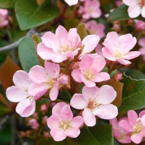 ベニバナシャリンバイ(紅花車輪梅)が咲いていました。 バラ科の常緑低木で、1~2cmの淡紅色の花🌼をたくさんつけるシャリンバイです💕 葉🍀が車輪のように輪生状につくのが特徴です🎶😃