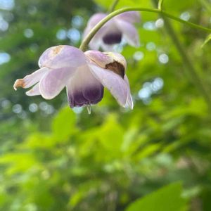 蓮華升麻。八ヶ岳南麓では初めて出会った。山地の落葉樹林でなく、信玄棒道の近くの山荘の石垣の外に群れて咲いていたのには、驚いた。 日本固有種で、一属一種。「夏の森の妖精」と言われているのもうなずける。俯き加減でシャイなイメージが奥ゆかしい。萼片は花弁のように平らに開き、少し濃い紫の花弁は丸まっている。花が蓮の花に似て、葉はサラシナショウマに似ているところから名付けられたようだ。 父親も母性本能の遺伝子を持っているらしく、それがちょっとくすぐられた気がする。