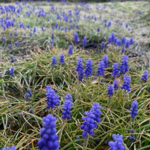 グレープヒアシンスとも。(長文) 1980年頃から園芸種が出回り、いまやどこの里山でも見られる。色も濃紫、紫薄から白、二色咲きまであるとか。今回、緩い傾斜地にまばらに生えているのが目に留まり、妙に気に入った。 目線を落としてしばし。紫の袈裟(けさ)で頭を包んだ僧兵の出で立ちを思わせたからだ。この装束は裹頭(かとう)と呼ばれる。むずかしい漢字だが、訓読みでは裹(つつ)むと読む。この東大寺、延暦寺などの裹頭衆が寺院の領地争いなどを繰り返し、一大武装勢力となった。信長の比叡山延暦寺焼き討ちが有名で、凄惨な戦いとなり数千人の山法師と呼ばれた僧兵の首をことごとくはねたと言われている。歴史上、信長の残虐性がとかく指弾されるのはこの戦いが大きい。かなり大げさに脚色されていて、再検証されているようだが。 赤い実をつける樹木のヤマボウシ(山法師)も頭状の花序を僧兵の白い裹頭に見立てて名付けられている。ムスカリも裹頭の僧兵が草原に散開した伏兵だと思うと、400年以上前の戦乱の世界に浸れる。