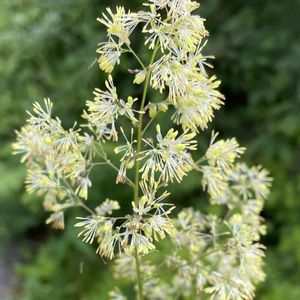 秋落葉松。秋は秋咲きを意味する。淡黄色の円錐花序のこの花が咲きだすと、秋が来たことを目で知ることになる。 カラマツソウ属の花には花弁がなく、萼も開花と同時に落ちるため、見えているのは多数の雄蕊とわずかな雌蕊。この糸状の雄蕊が花弁のように見え、落葉松の葉に似ているところから名付けられたようだ。山地に生えるカラマツソウは花が白っぽく見えるので、見分けは簡単。 今夏は八ヶ岳高原でも暑い暑いと言っているうちに、足下には秋が忍び寄っている。