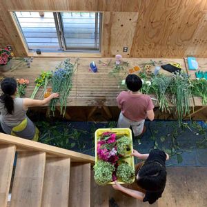 八ヶ岳の麓にあるフラワーアレンジメントのお店ーflowers for Renaでは、次々とアレンジメントや、ドライフラワーようの花束が作られてます