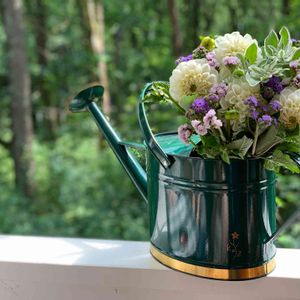 ちょうどいい花瓶がないので、カインズホームで買ったじょうろに、八ヶ岳の麓にあるfliwers for Renaさんのブーケを入れたらちょっといい感じになりました