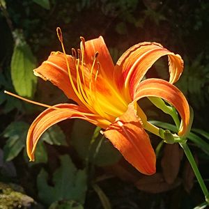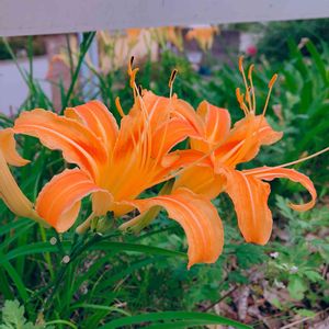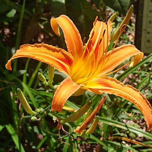 公園の花壇に鮮やかなオレンジ色のお花が咲いています🧡😊 Googleレンズではアキノワスレグサ、トキワカンゾウとでてきました。 ヘメロカリスの仲間ではあると思いますが、合っていますか❓