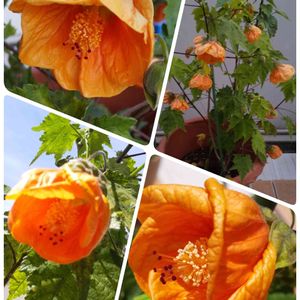 花付きのいいアブチロン 初恋✨🌼✨ 咲き始めは、黄色っぽい花色で、時間が経つとオレンジ色に変わっていきます😄💕