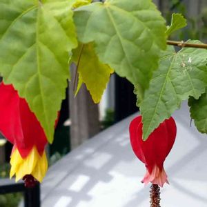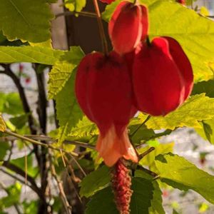 No 1191 挿し木していた アブチロンの花が咲きました🎵 赤いランプシェードみたいです。