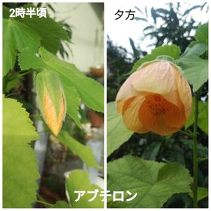 アブチロン 昨日の夕方 開きかけてたのが 今朝 開きました。